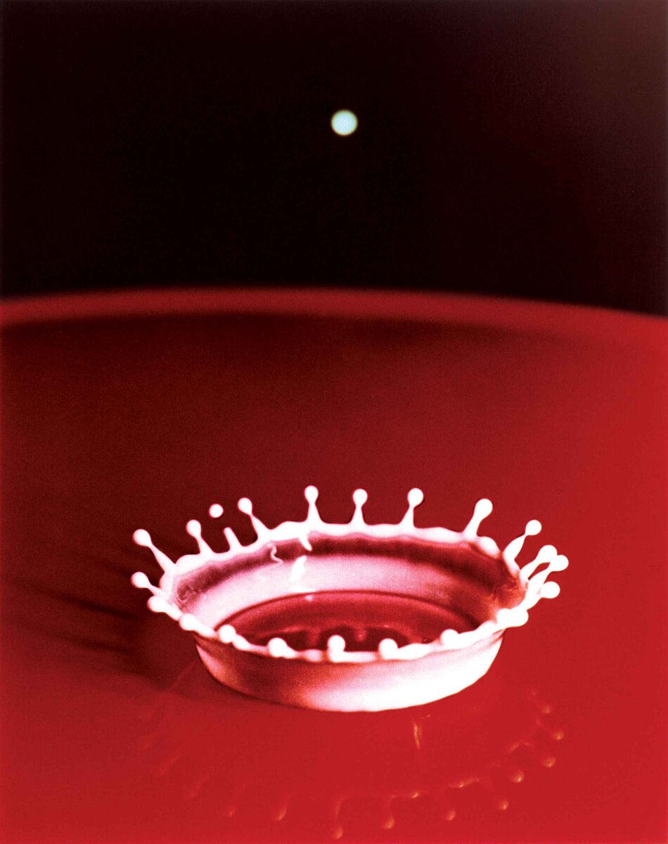 а. Гарольд Эджертон. Корона из капель молока. 1957. б. Гарольд Эджертон. Клюквенный сок в молоко. 1966.