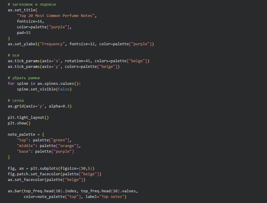 Анализ показывает, что парфюмерный рынок опирается на ограниченный, но универсальный набор нот, обеспечивающих узнаваемость, стабильность и коммерческий успех ароматов.
