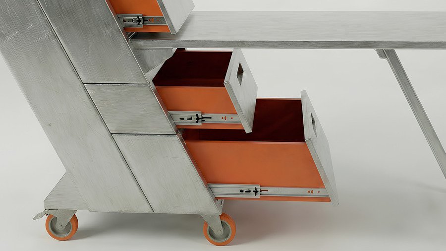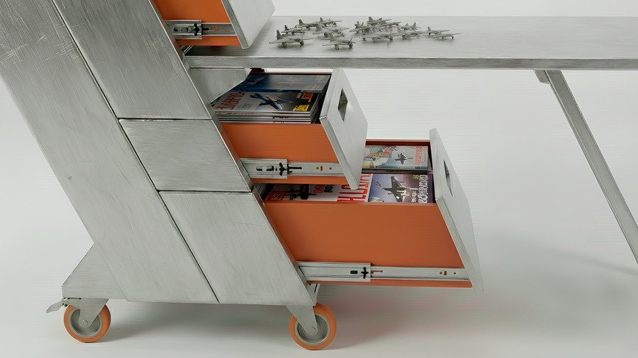 Мебель обычно статична. Но что, если придать ей инерцию самолета? Проект Aero-Table — это материализация динамичной графики шрифта Tangage. Наклон в 20°, сталь и сигнальный оранжевый превращают рабочее место в ваш личный кокпит.