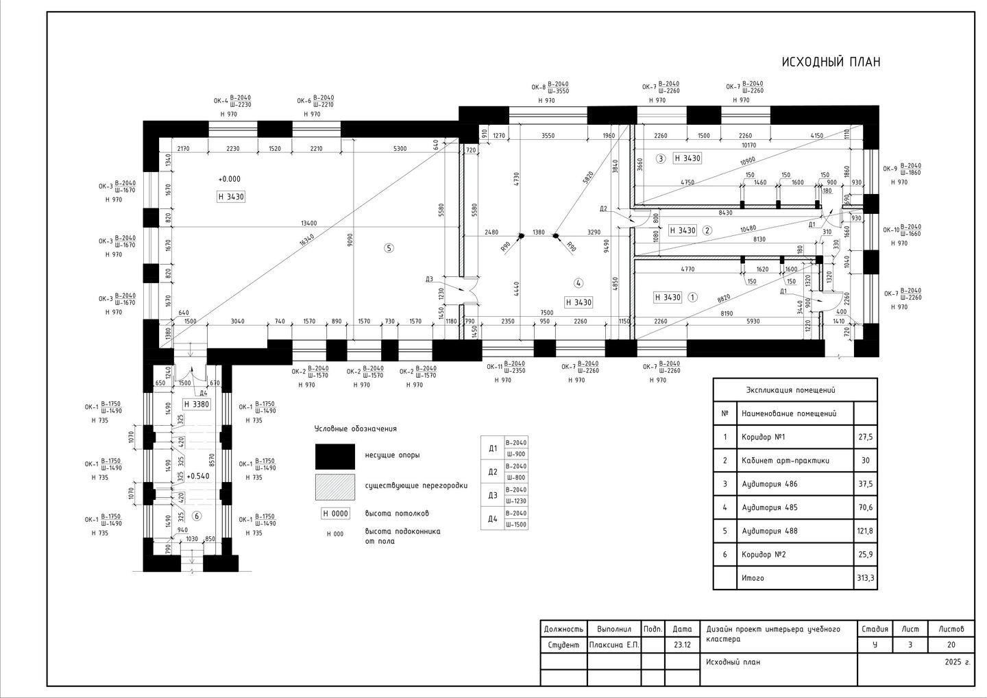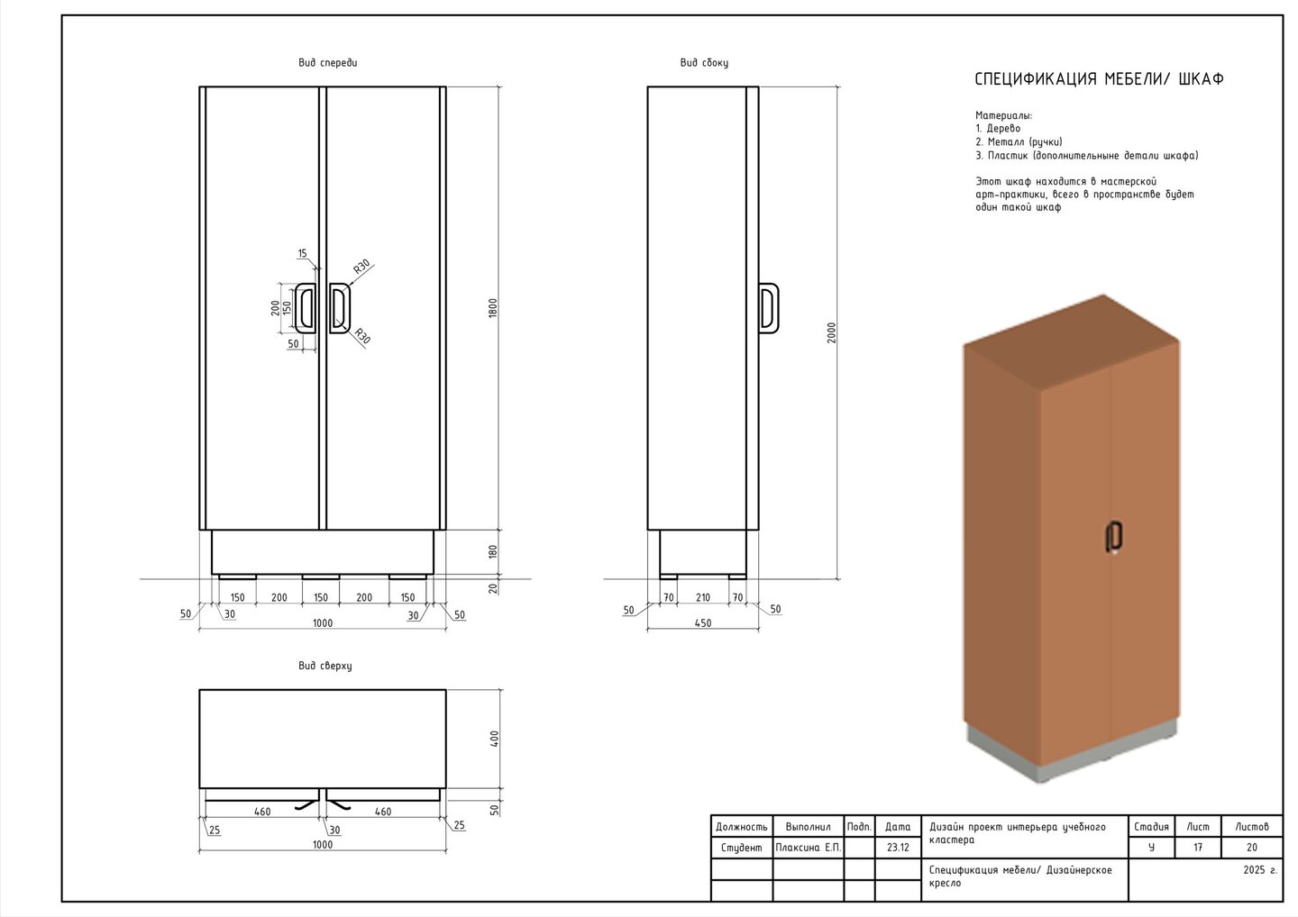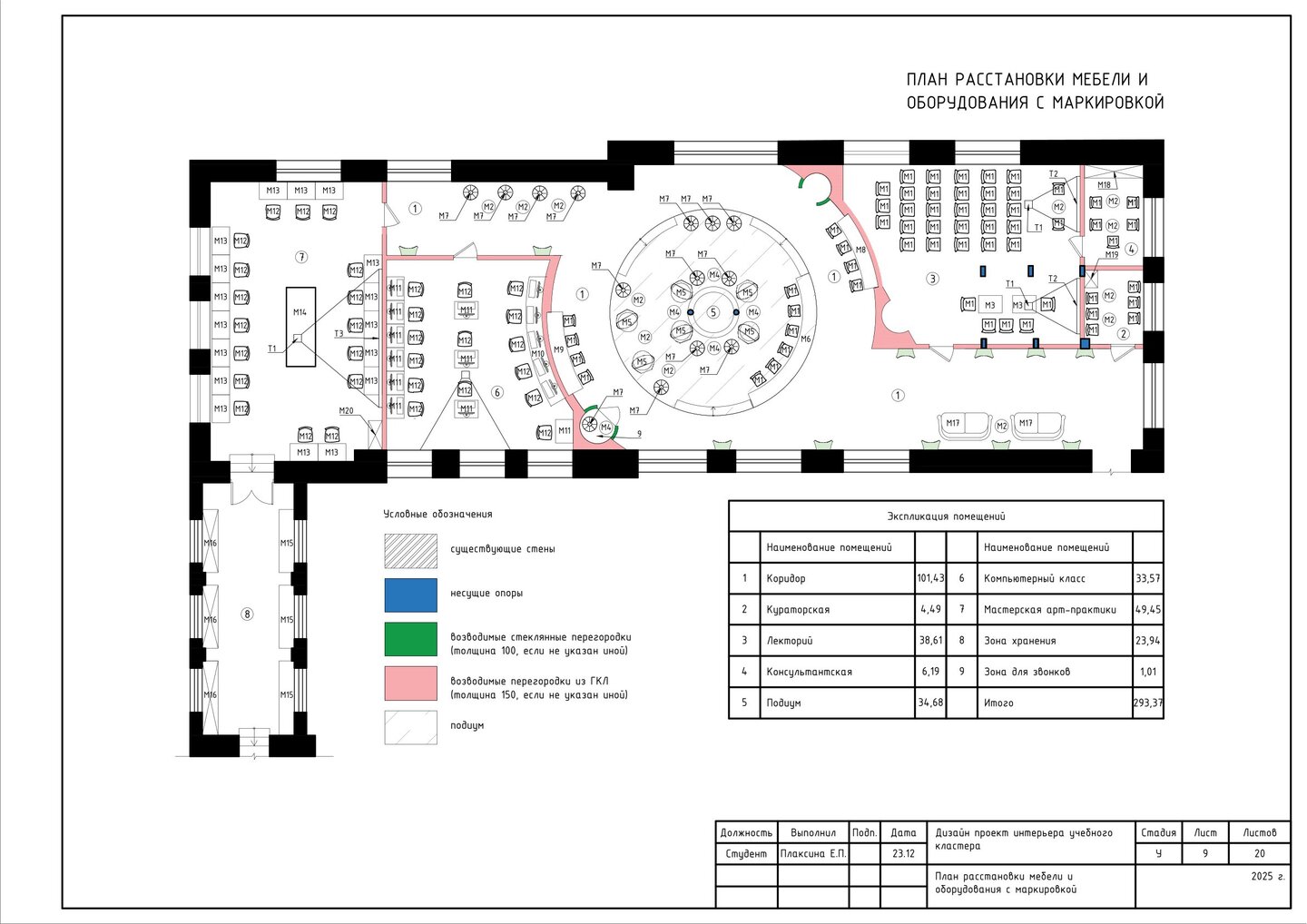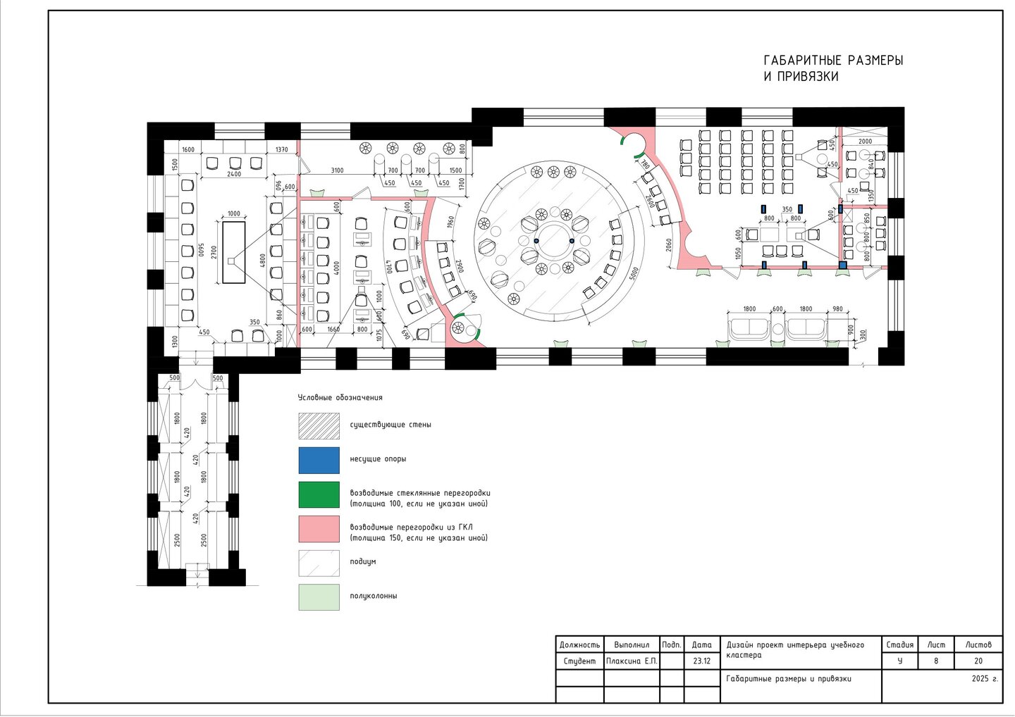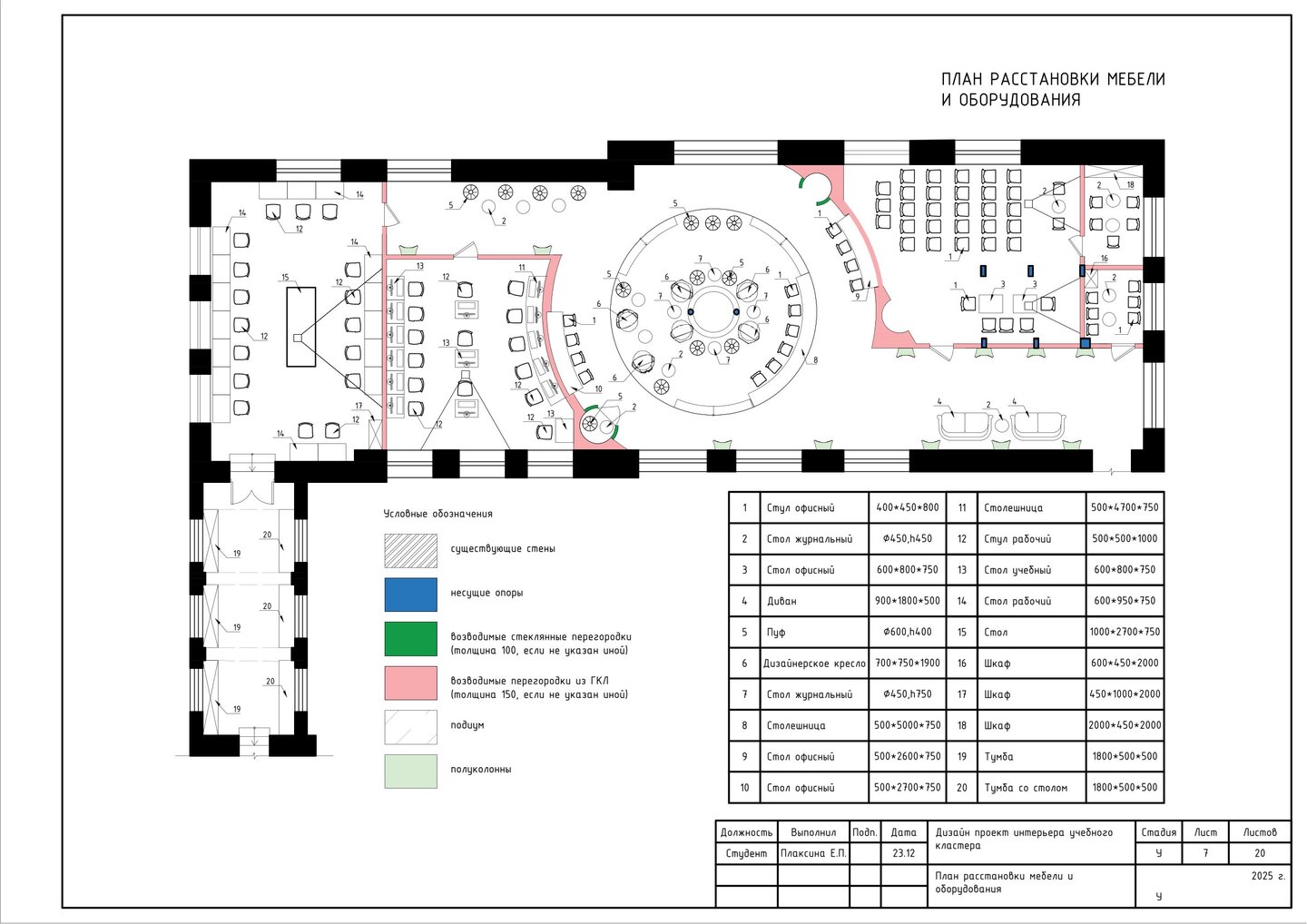 1. План расстановки мебели и оборудования; 2. Габаритные размеры и привызки мебели; 3. Маркировка мебели и оборудования;