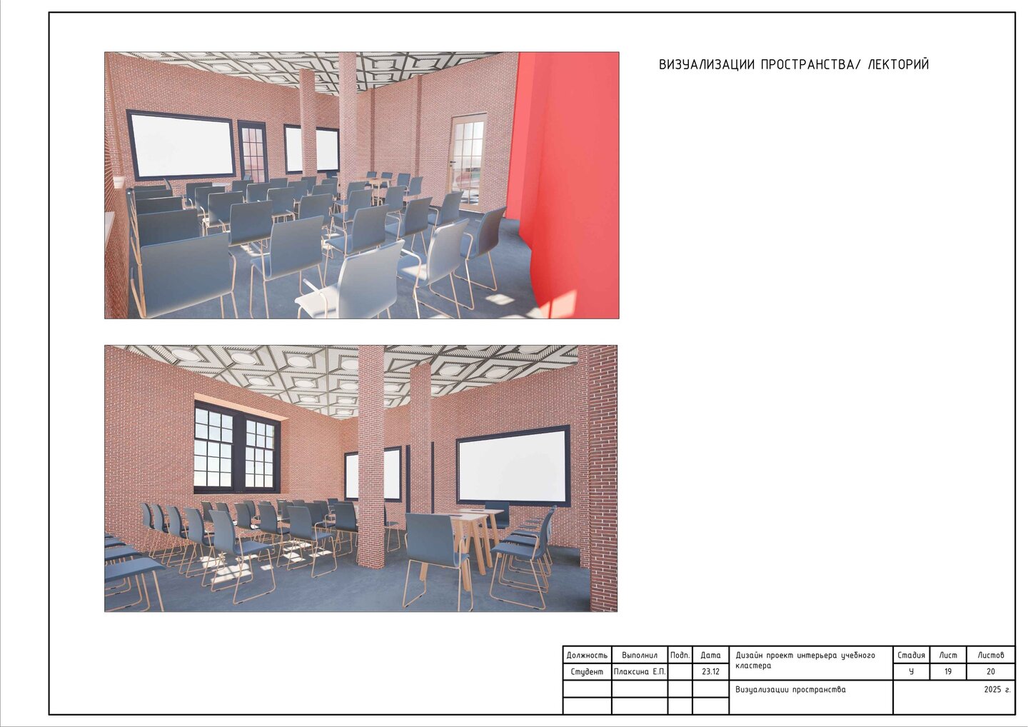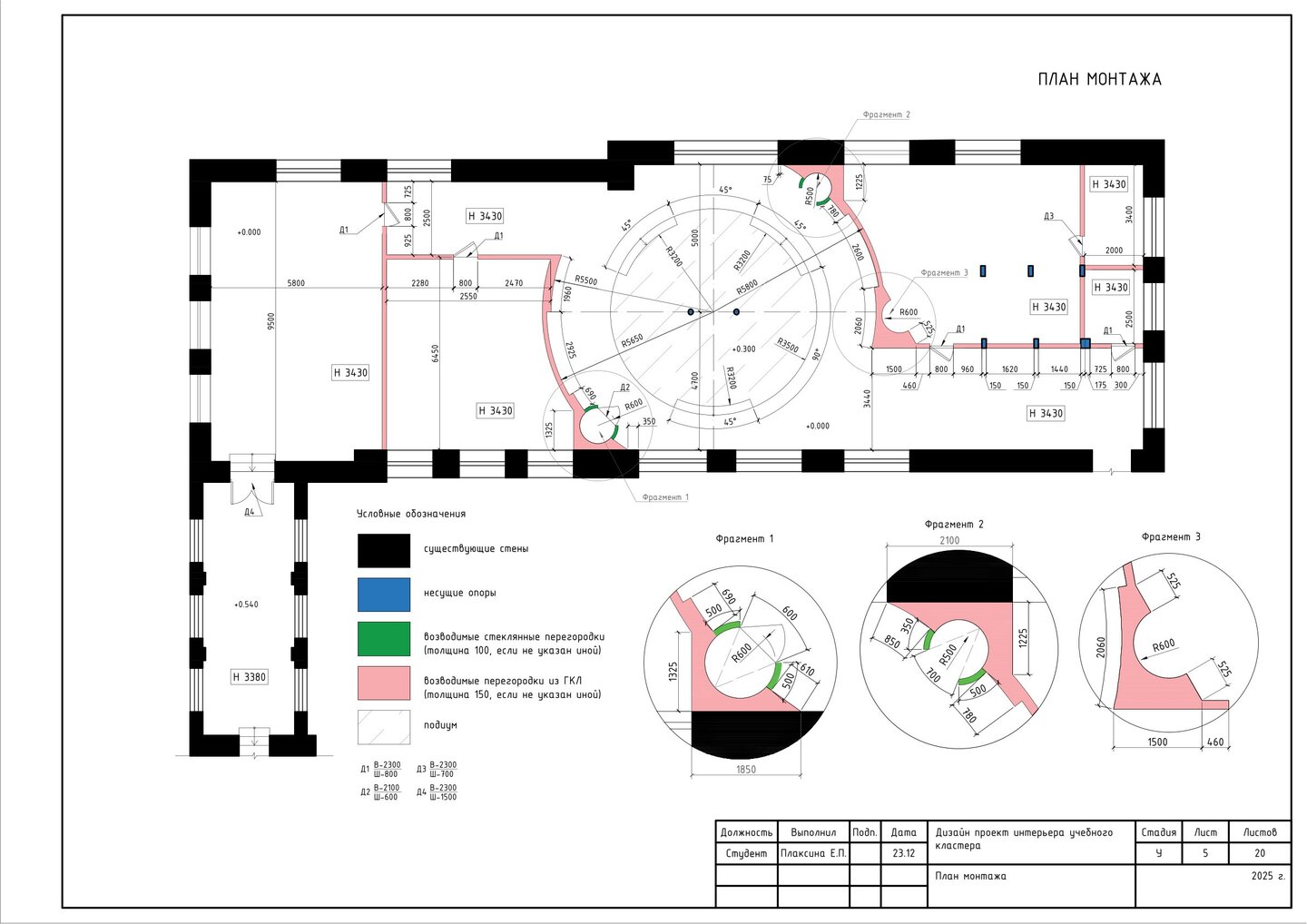Данный проект представляет собой альбом чертежей для учебного кластера «Sangreal». Влючает соответствующие чертежи (демонтажный, план монтажа и т.д), спецификацию мебели и оборудования, клаузуры мебели и визуализации проекта.
