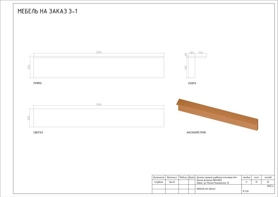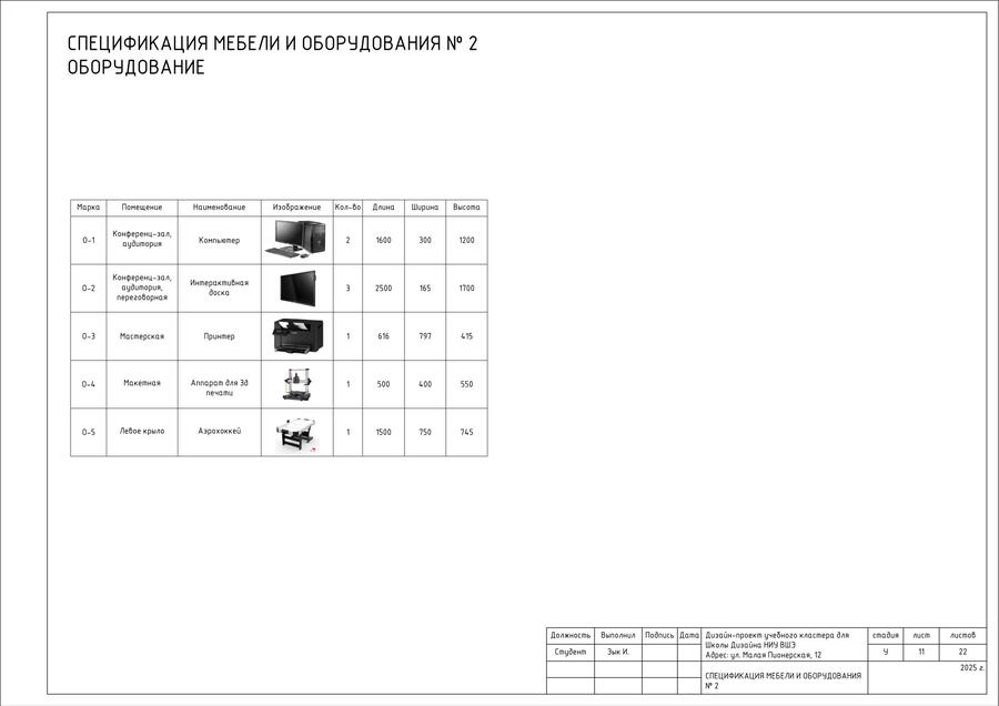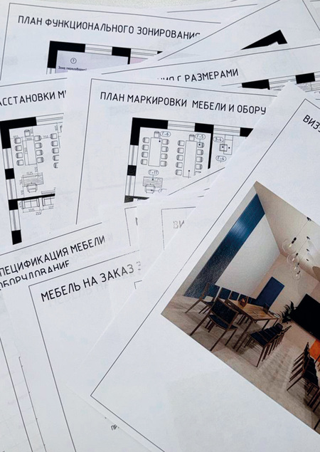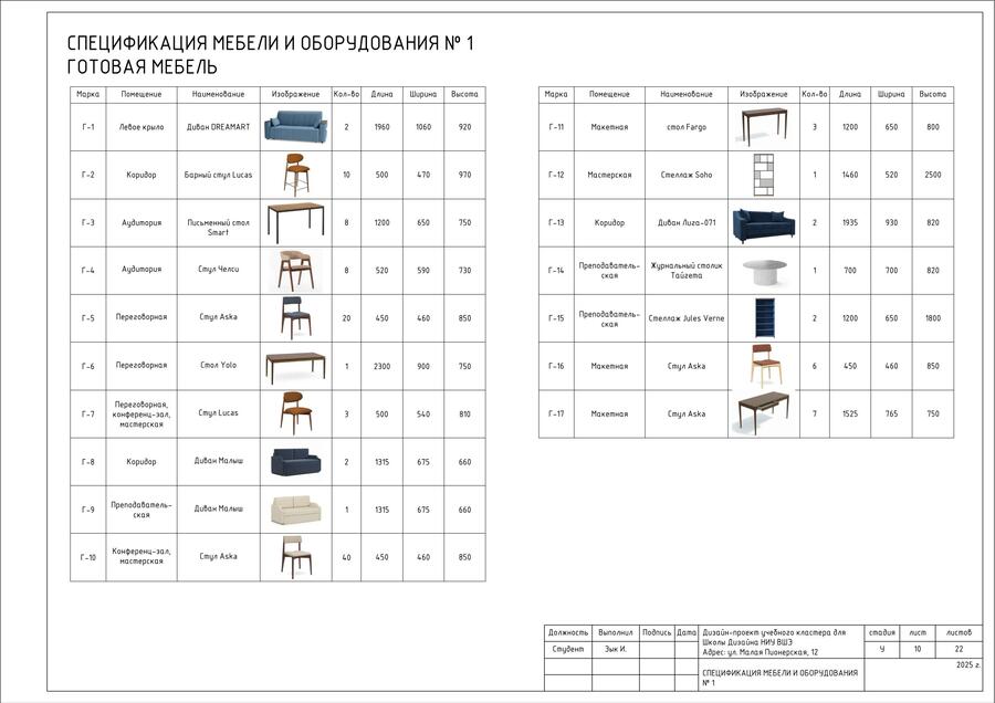 Для объекта нужно закупить готовую мебель и оборудование, а также необходимо разработать мебель на заказ. Все это учтено в спецификациях и чертежах индивидуальной мебели