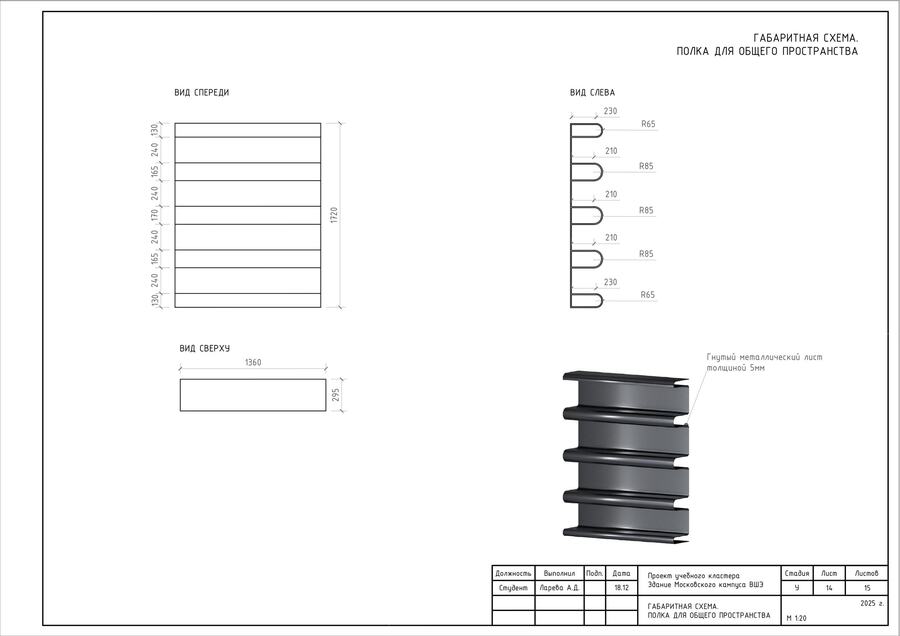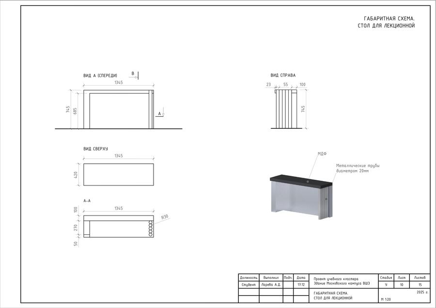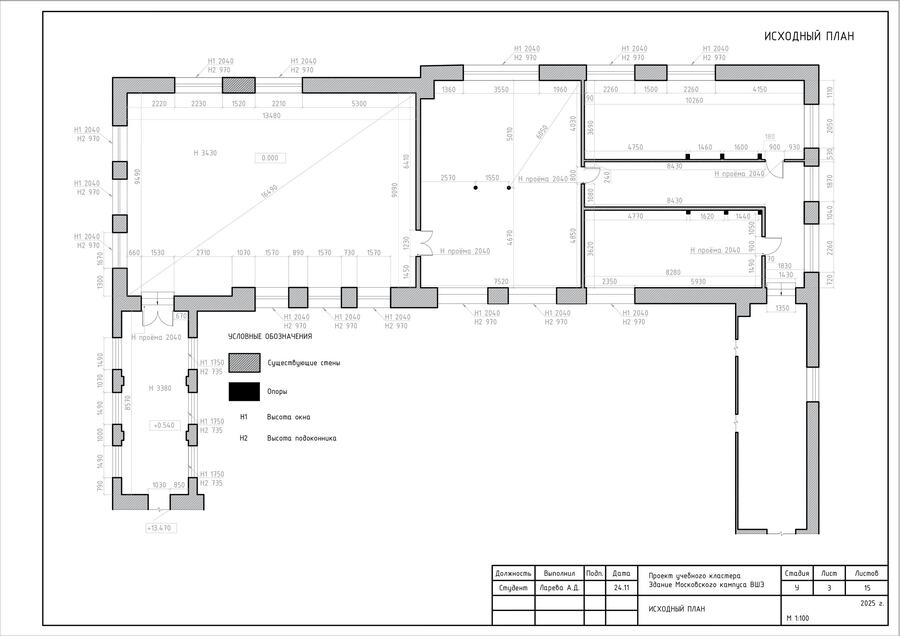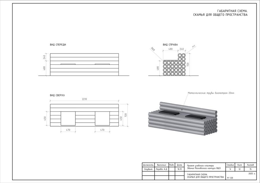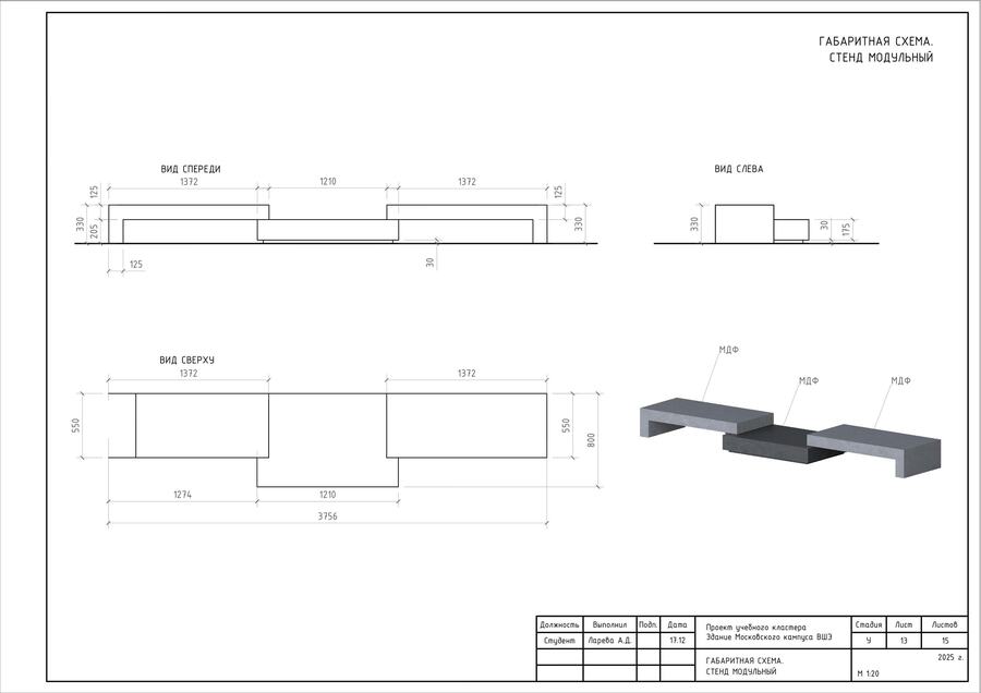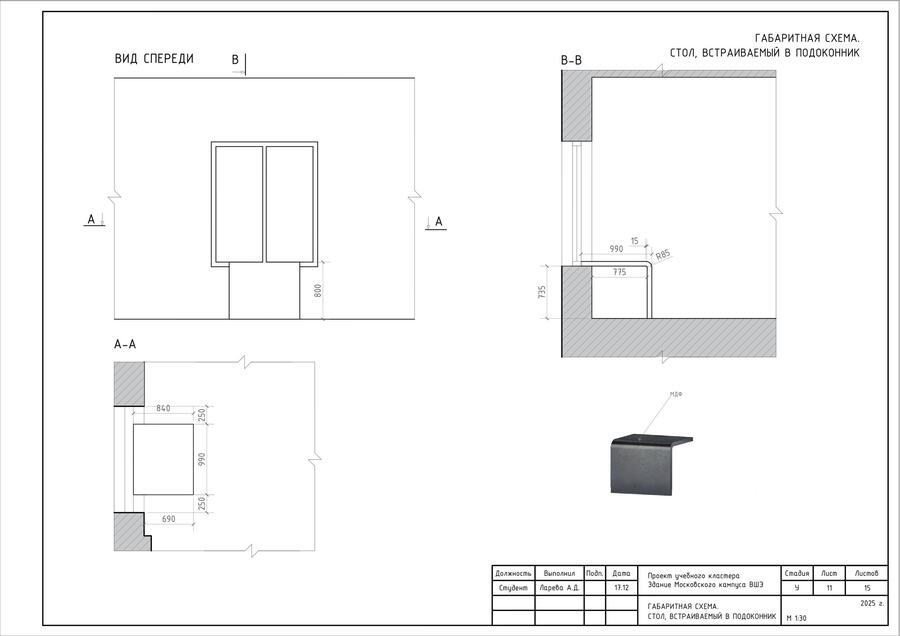 В первом модуле был разработан проект учебного кластера в здании НИУ ВШЭ в Москве (ул. Малая Пионерская, 12). Во втором же модуле, в рамках курса по освоению AutoCAD, этот проект был оформлен в виде цифрового альбома чертежей с соблюдением стандартов технической документации и методических требований. Альбом содержит планы, виды и фрагменты кластера.