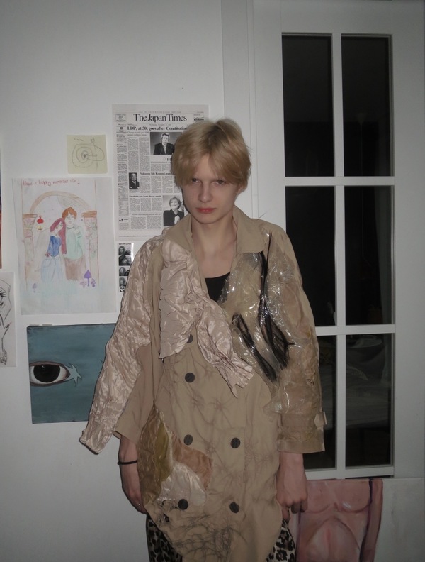 В художественная выставке «ALL» представлены все работы Маурицио Каттелана, который из-за чрезмерной критики общественности рано закончил свою карьеру, хоть и оставил яркое пятно в мире искусства. В своем проекте я демонстрирую смелость художника, его самоотдачу и преждевременное разрушение, которое коснулось его намного раньше положенного. Он не справился, поэтому выставка «ALL» стала закатом его карьеры. Перед собой я поставила задачу, создать целостный тренч, состоящий из различных интересных фактур, которые будут четко передавать творчество Каттелана, ведь его выставка представляла собой большой арт-объект, состоящий из разных деталей (всех его работ). В изделие должны граничить искусство и разрушение.