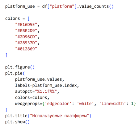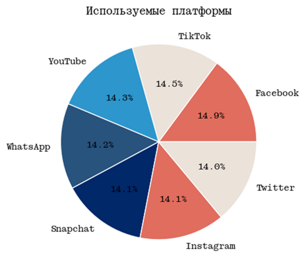 Анализ данной диаграммы показывает, что лидирующей социальной платформой является Facebook/