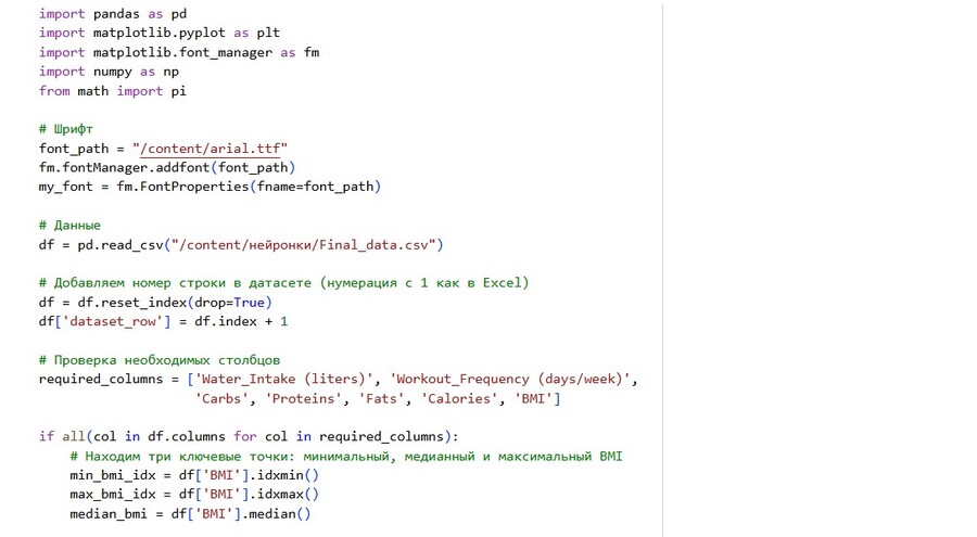 Проведенный комплексный анализ данных наглядно демонстрирует, что физическое здоровье и состав тела являются результатом многомерного баланса взаимосвязанных факторов, а не следствием какого-либо единственного показателя. Графики выявили, что ВИИТ — наиболее энергозатратный тип активности, подтвердили фундаментальную, но не абсолютную роль калорий в управлении весом, показали соотношение сбалансированного потребления макронутриентов при здоровом ИМТ и окончательно опровергли миф о существовании универсального профиля здоровья.