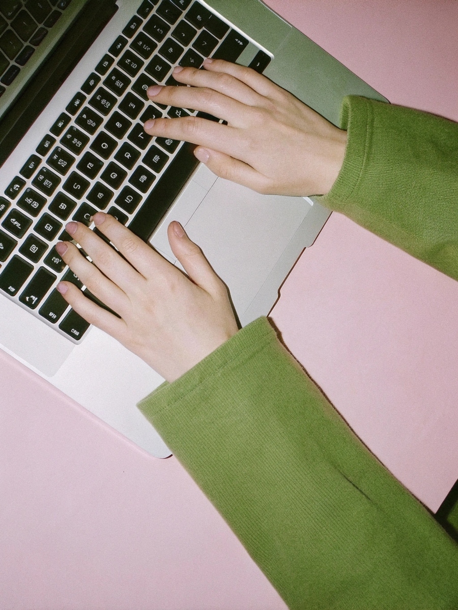 Промт для генерации обложки проекта в Recraft: A highly realistic close-up photo of hands typing on a laptop keyboard. Focus on the hands and keys, detailed skin texture and fingernails, natural lighting, soft shadows. Background is solid pink. Photorealistic, high detail, depth of field, DSLR quality, 35 mm lens, f/1.8, cinematic lighting, ultra-realistic, candid shot, no posing.