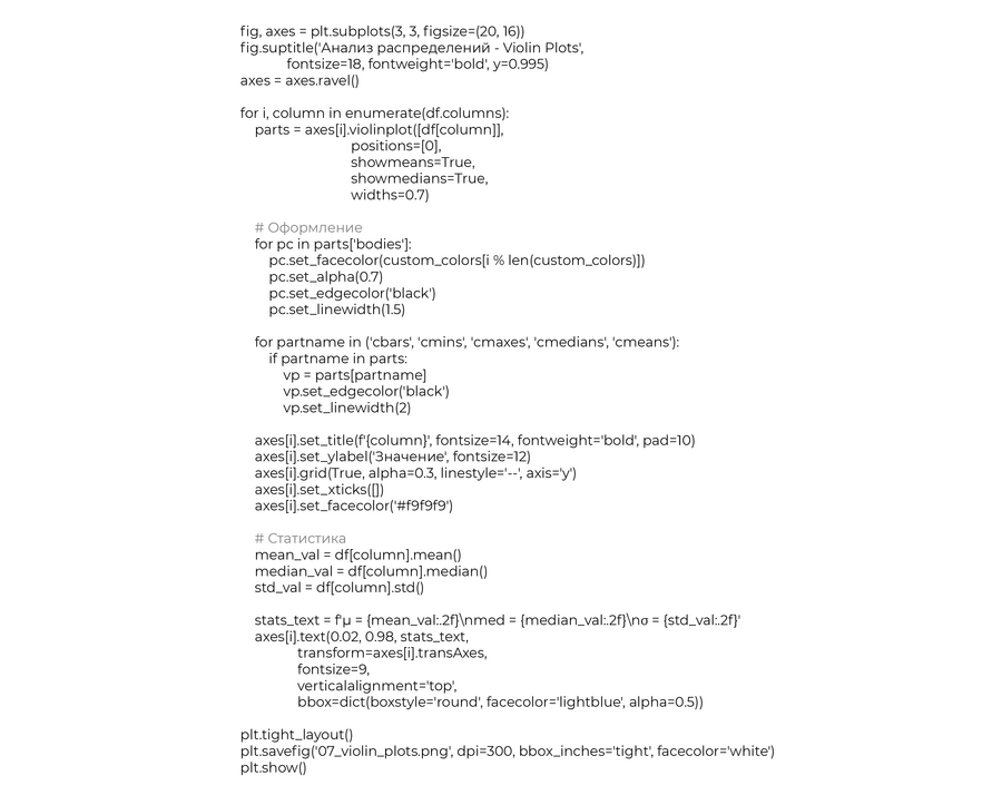 Комбинация boxplot + плотность распределения.