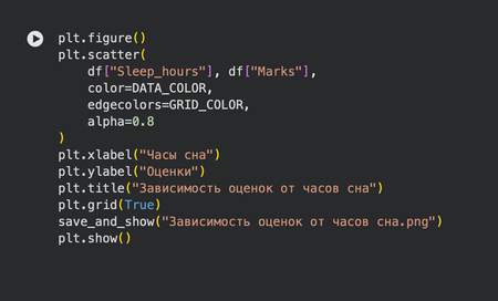 Составим графики для выявления зависимости успеваемости студентов от количества сна (код слева) и от количества посвящённому учёбе времени (код справа).
