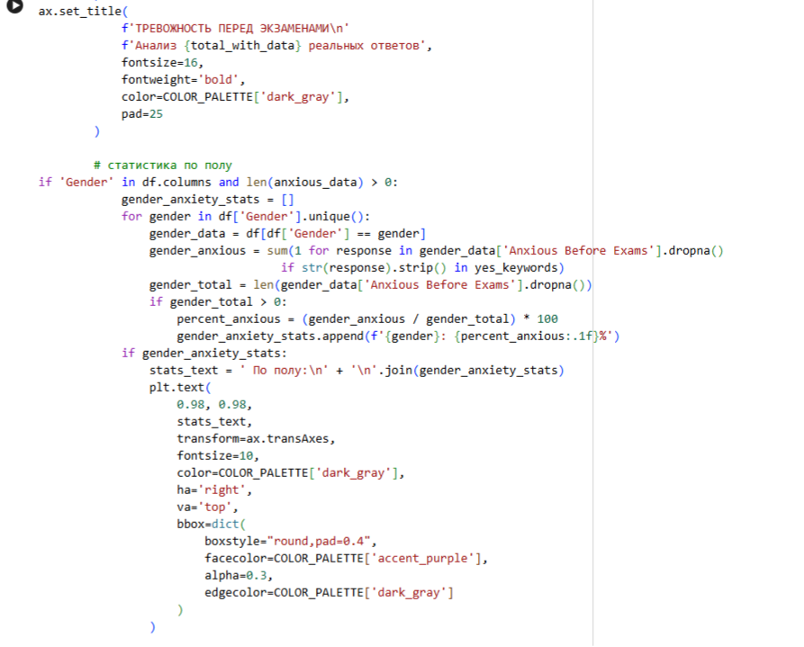 Дополнительно для анализа и обработки данных я использовала Pandas, для визуализации — Matplotlib и Seaborn, а для математических — вычислений NumPy.