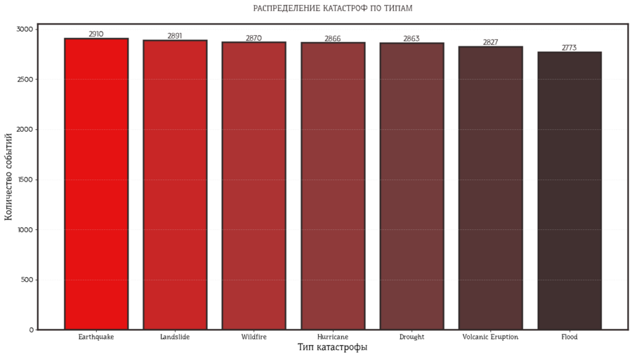 Если делать вывод по всем сделанным графикам, то можно выявить что самым смертоносным за 2022–2025 год природным явлением является землетрясение.