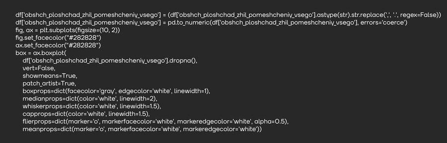 по boxplot можно понять: где сосредоточены типичные значения площади, есть ли аномально маленькие или большие объекты, насколько сильно варьируются площади