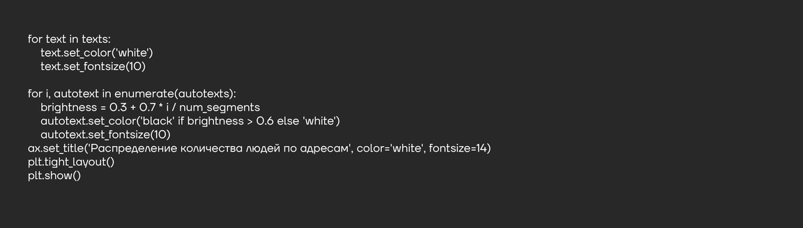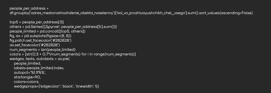 график позволяет быстро увидеть наиболее населённые адреса и понять распределение людей по всем адресам.