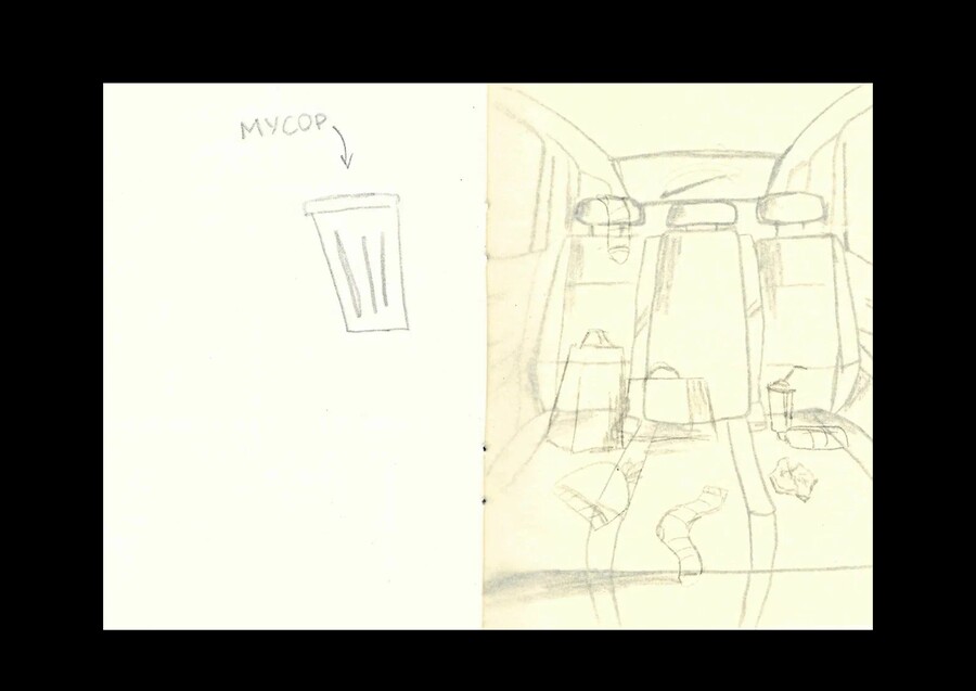 В проекте собраны упражнения, которые мы выполняли на курсе, а также зин и носители на его основе. Темой моего итогового зина является поиск пространства автомобиля через призму пользовательского опыта. В нём отражены детские воспоминания, деконструкция автомобильного пространства, а также ощущения, связанные с ролью водителя и пассажира.