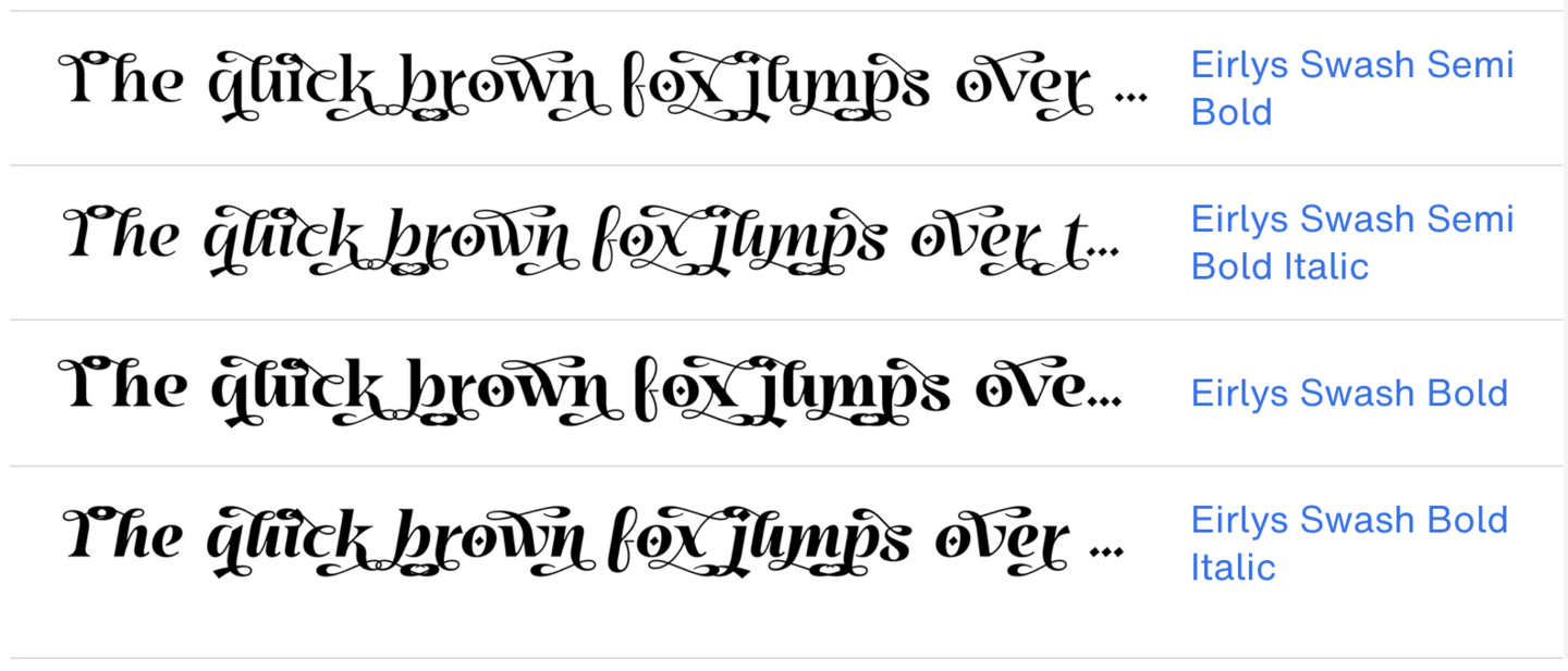Eirlys Font Family — название шрифтового семейства. Многие шрифты из него могли бы подойти для этого проекта.