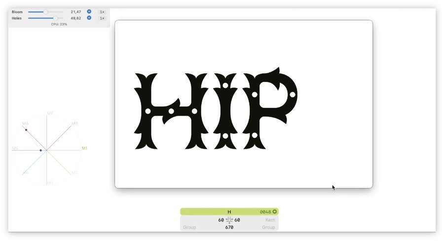 За основу взят вариативный шрифт Supa Primula Bloom, обладающий системным качеством: