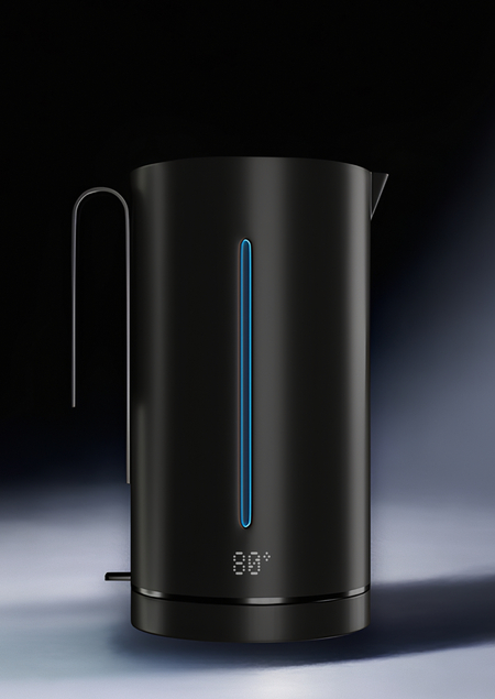 CY-01 — минималистичный электрический чайник, сосредоточенный на одной задаче Один переключатель отвечает за включение и выключение, скрытый дисплей показывает температуру только при использовании