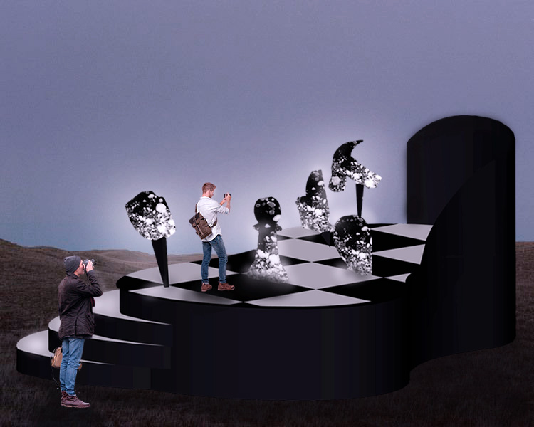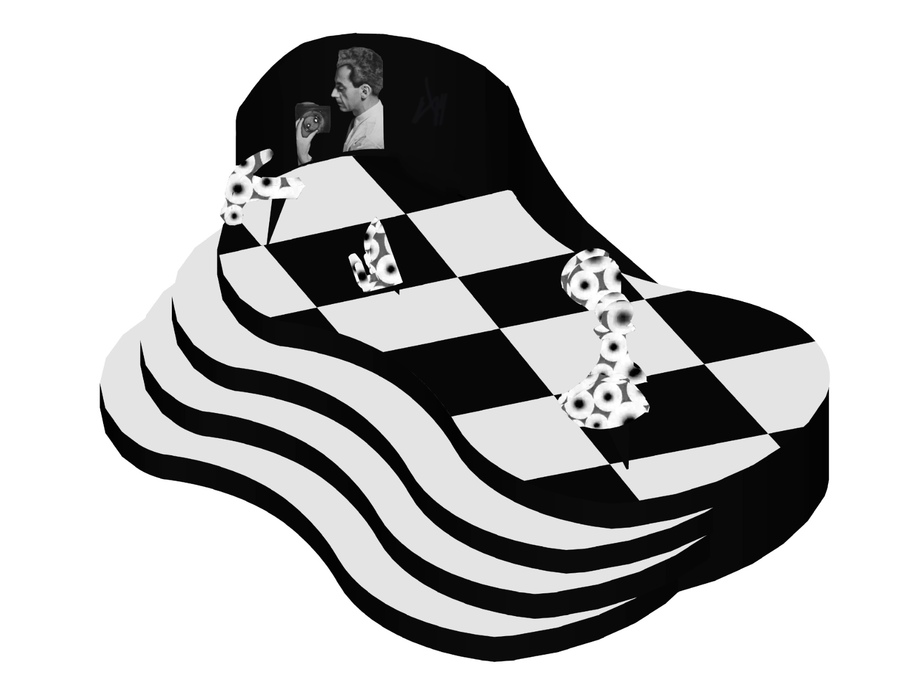 Инсталляция материализует этот принцип через взаимодействие зрителя с объектом. Фигуры, отсылающие к работам художника, в движении становятся экраном для его фильма. При остановке они образуют композицию, которая раскрывает профиль Ман Рэя только при нахождении зрителем правильного ракурса. В этот момент проекция переносится на большой экран, завершая цикл: от индивидуального открытия образа к его коллективному восприятию. Таким образом, искусство рождается не как готовый объект, а как результат активного соучастия зрителя.