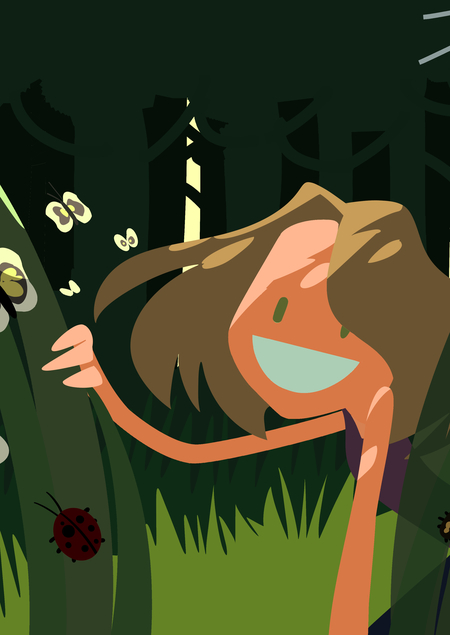 деревенская девочка Шура показывает гостю, что скрывается в лесу.