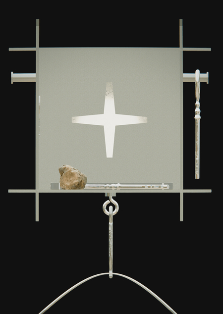 Конструкция, которая объединяет декоративные светильники и держатели для ключей. Металлические рамки светильников выполнены в форме букв фирменного шрифта, внутри которых размещён стеклянный световой блок.