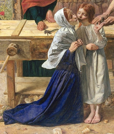 Джон Эверетт Милле «Христос в родительском доме», 1850. Британская галерея Тейт, Лондон. Фрагмент.