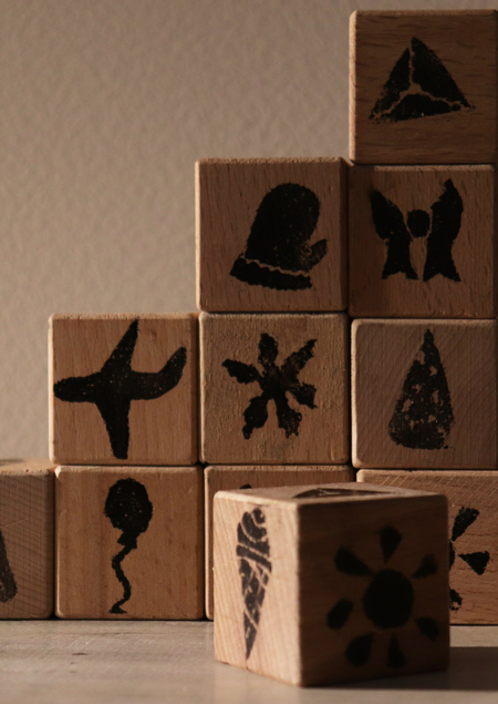 Воспоминания отпечатаны на сторонах детских деревянных кубиков, из чего и состоит арт-объект.