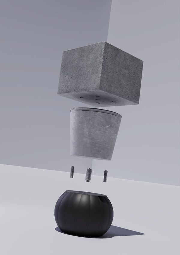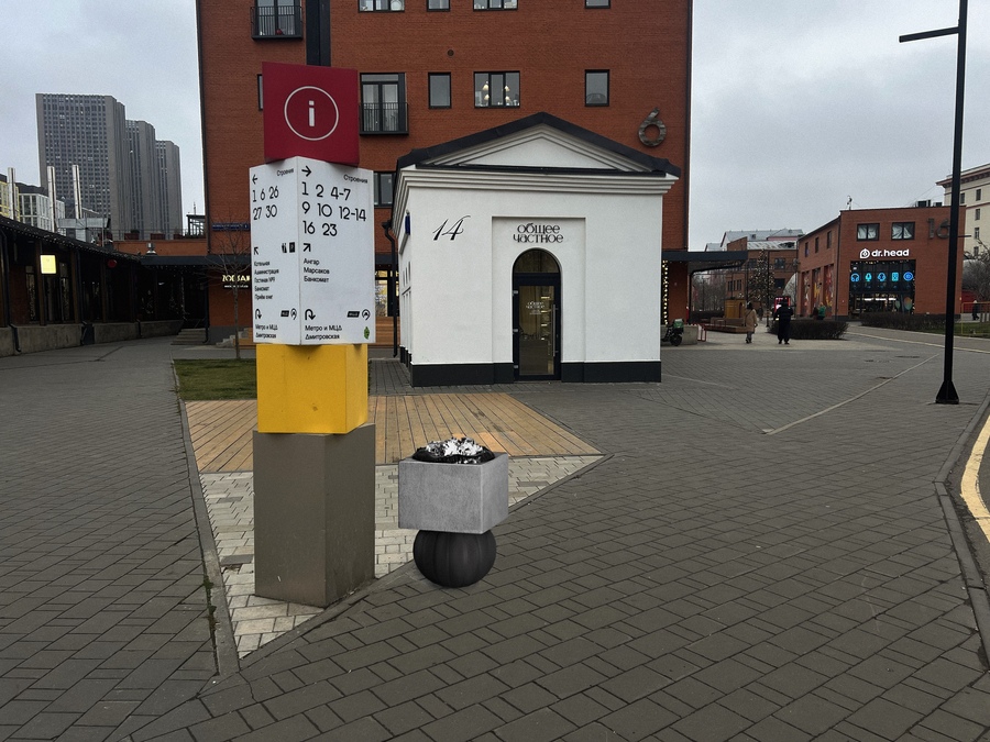 В процессе подбора формы для урны я пришла к интересному решению — куб, стоящий на шаре, — и решила доработать именно его. Тяжёлое, монолитное основание-сфера из литого чугуна символизирует наследие, устойчивость и «память места». На нем строгий бетонный куб — отсылка к современному, функциональному слою жизни пространства. Это диалог эпох, материализованный в утилитарном предмете.