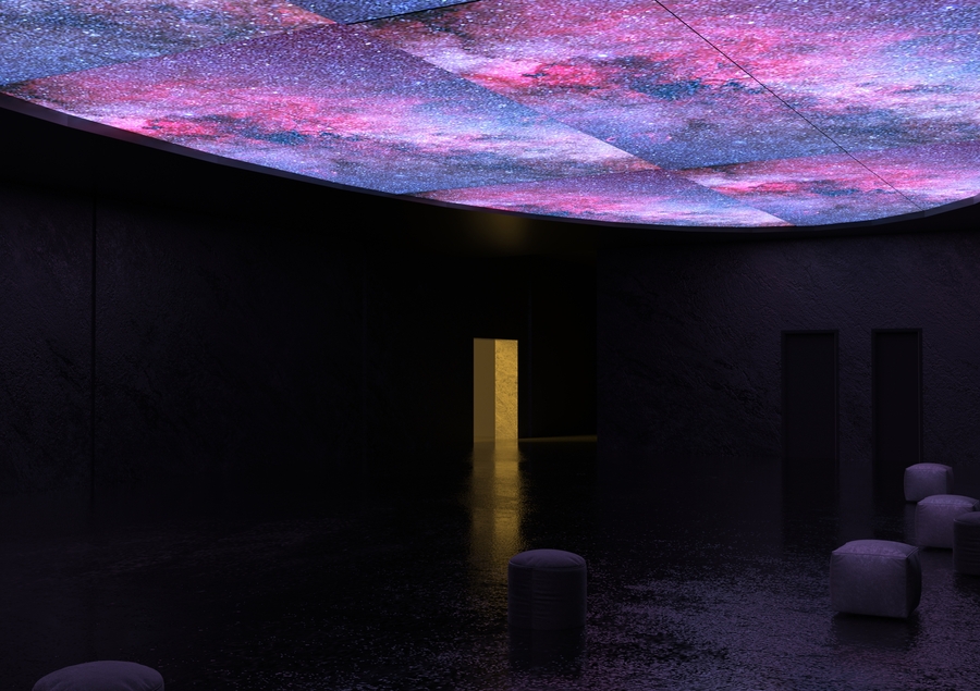 Здесь космос лишён холодности. Тактильные материалы, мягкие формы и приглушённый свет создают ощущение защищённого «космоса внутри», подчёркивая связь человека и Вселенной, а не дистанцию между ними.