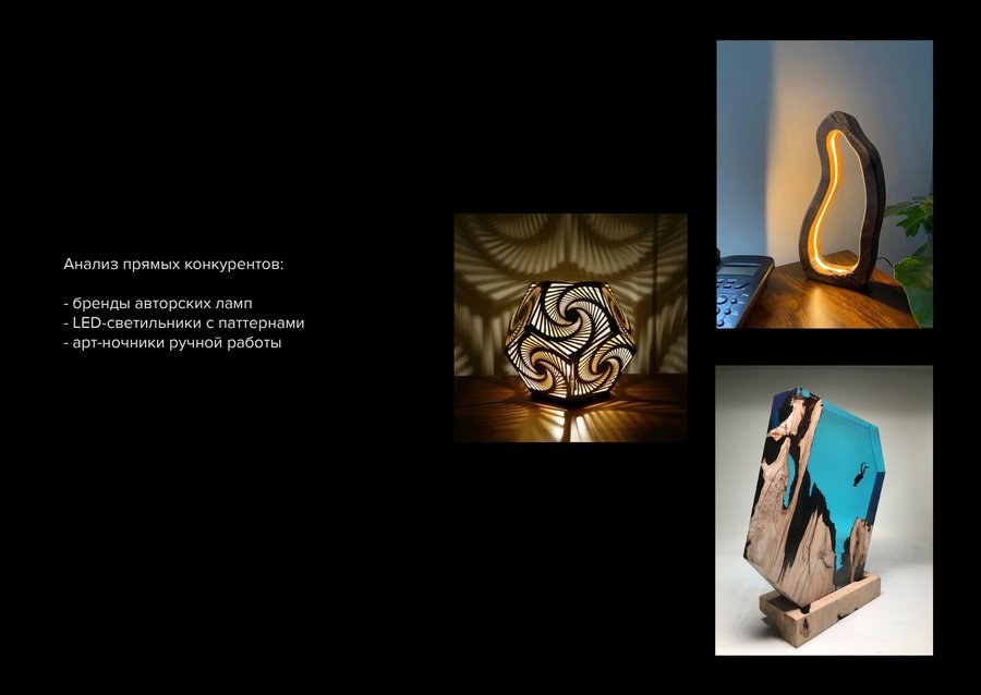 - люди, ценящие атмосферный дизайн и нестандартные предметы интерьера - владельцы квартир-студий, небольших пространств, где важна уютная подсветка - молодые семьи, покупающие декоративные элементы для спальни и детской - покупатели подарков премиум и среднего ценового сегмента