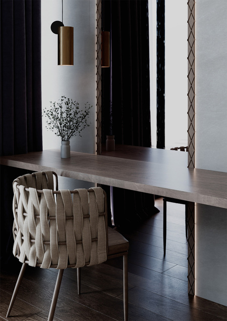 Акцентной деталью моих интерьеров можно отметить «инжирный» цвет. Он добавляет глубины и чувственности моей работе (Этот плод выбран также потому, что он произрастает в Крыму)