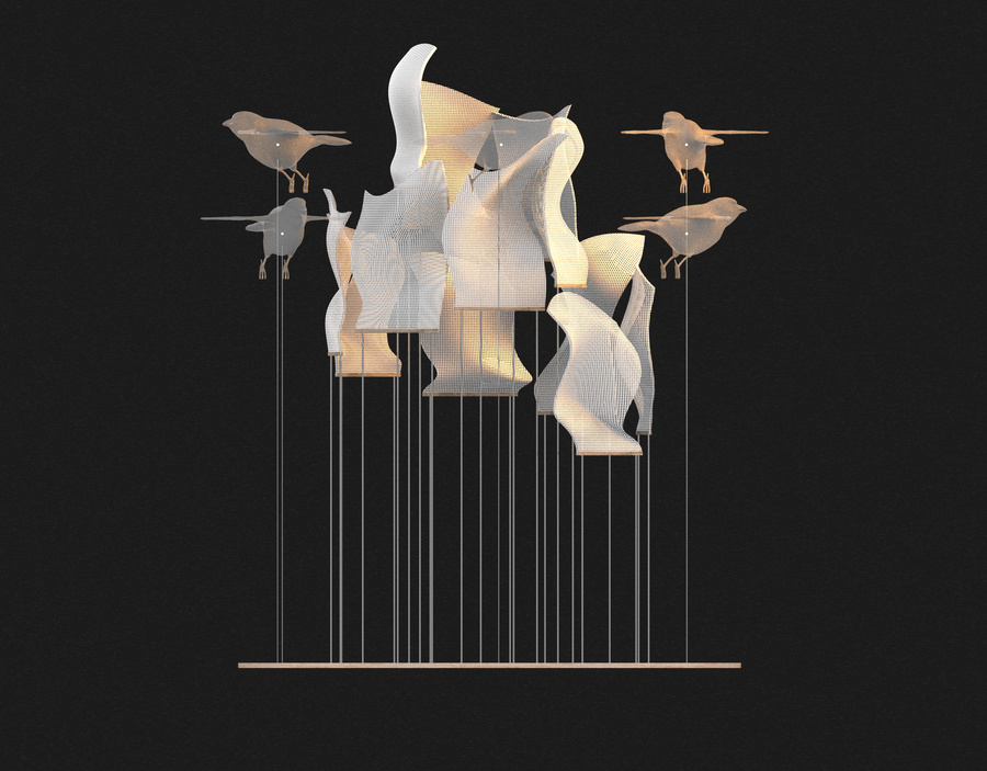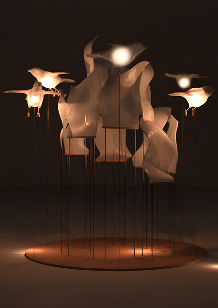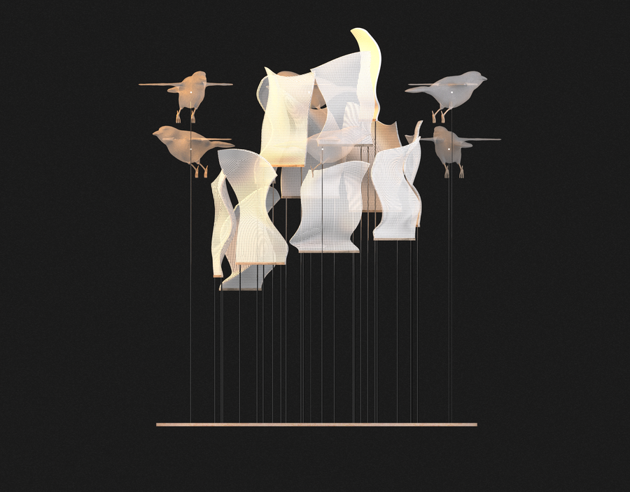 В основе концепции лежит сочетание природных мотивов и современного дизайна — светильник символизирует движение, жизнь и циклы природы, что выражается через динамичные формы и элементы. В формообразовании используются силуэты зябликов — образ, отсылающий к природе и напрямую связанный с орнитологической станцией, в честь которых она названа.