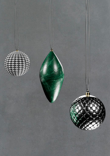Поэтому ёлочные игрушки я делаю не как случайный декор, а как продолжение среды. Я опираюсь на те же материалы и ощущения, что и в интерьере: сочетание металлических элементов, матовых фактур и текстиля.