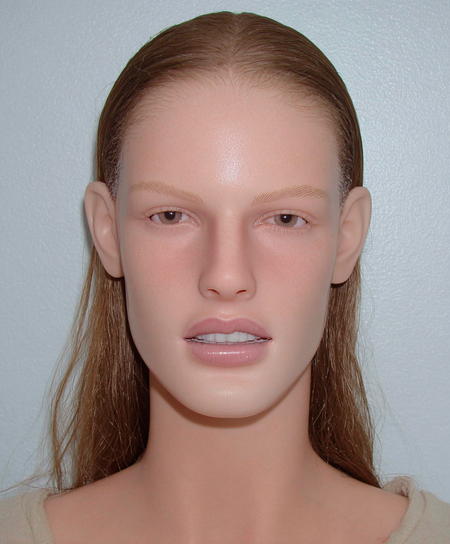 Я сначала фотографировала реальных людей, а потом пропускала их через искусственный интеллект, чтобы превратить их в специально сконструированные «идеальные» пластиковые лица — как в продукт, а не живого человека.