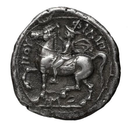 Изображение всадника на реверсе отсылает к победам Филиппа в конных скачках на Олимпийских играх. Так же всадник может быть олицетворением военной мощи македонской конницы.