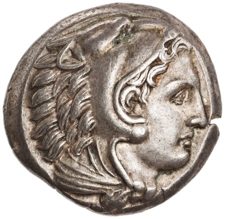 Отправной точкой анализа монет Александра послужит прижизненный чекан, ранние тетрадрахмы с Гераклом на аверсе. Изменения в образе героя являются одной из ключевых деталей для подтверждения гипотезы моего исследования.