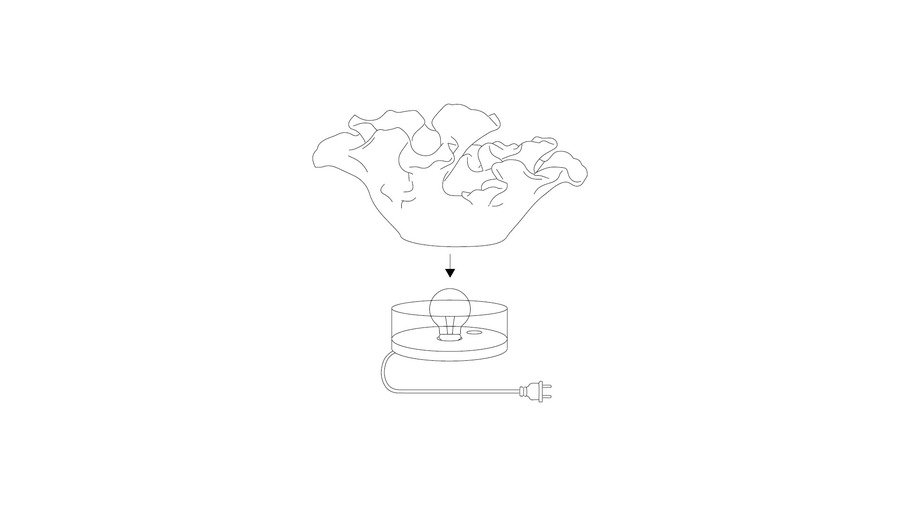 Fungi — это световой объект, вдохновлённый формами грибов. Проект исследует биоморфную форму как основу интерьерного предмета, где свет выполняет мягкую, атмосферную функцию и подчёркивает объём объекта.