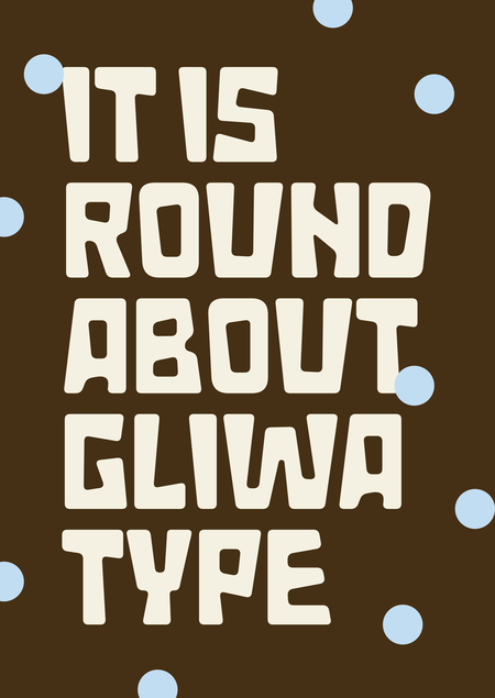GLIWA — (вдохновлено — «глина») акцидентный шрифт с мягкой пластикой, но обозначенными формами.