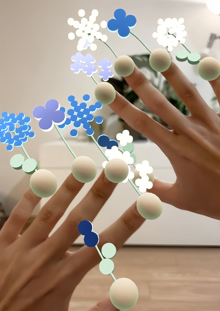 Фильтры построены вокруг взаимодействия тела и цифровой среды: элементы, связанные с руками и пальцами, отражают акт прикосновения и ухода, лицевые эффекты передают состояние сосредоточенности и спокойствия, а растительные формы реагируют на движения пользователя, создавая ощущение живого отклика. Процедурные анимации и трансформации подчеркивают процесс роста как непрерывное действие, в котором человек и среда находятся в постоянном диалоге.
