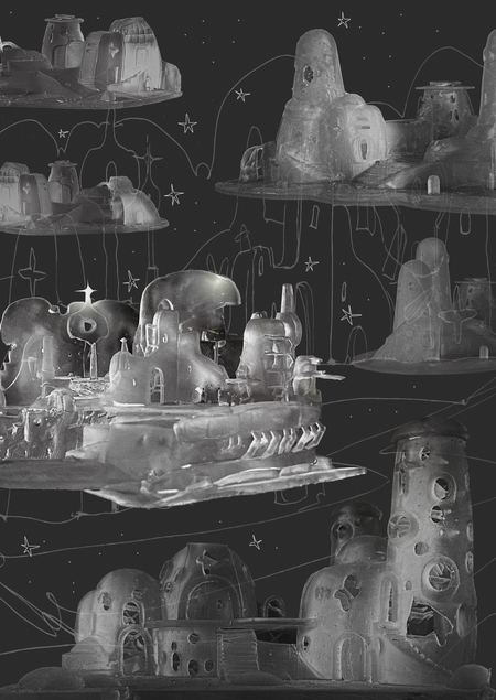 Прозрачные макеты фрагментов города Ондердайволк с планеты Гайзмар помогут лучше понять её устройство. Через эти макеты зритель может буквально прикоснуться к миру, который состоит из догадок и размышлений.