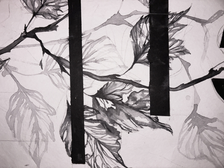 Чёрные, разорванные листья на ветках указывают на умирающее растение. Работа говорит о хрупкости городской зелени в условиях постоянного загрязнения.
