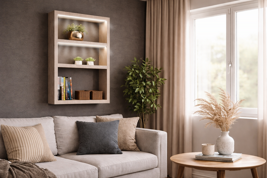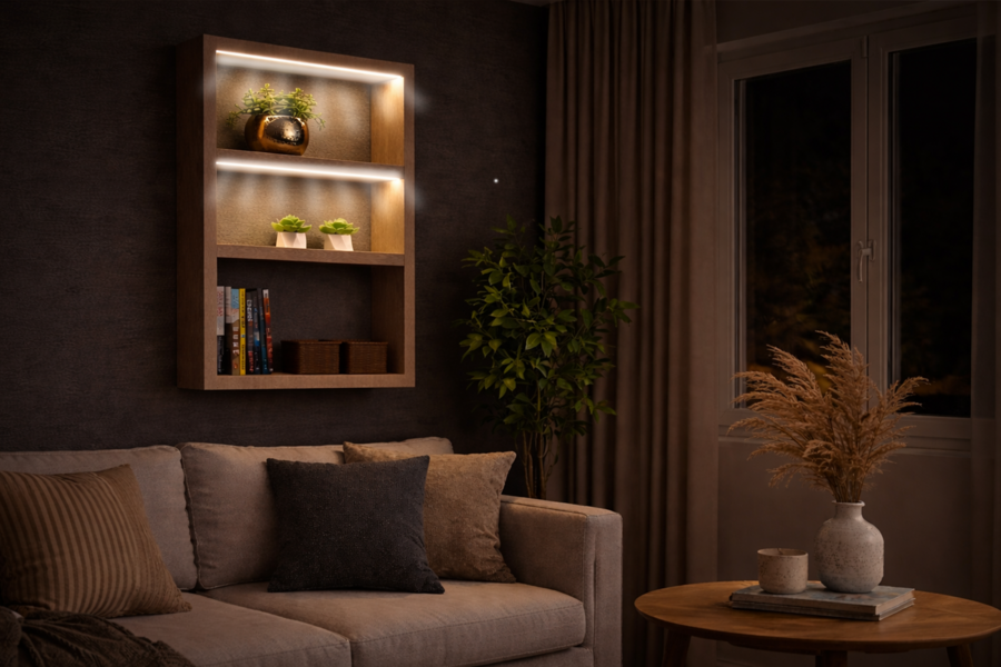 GlowLeaf — это серия полок для жизни в малогабаритных пространствах: настенные, напольные, а также модели для размещения на мебели или крепления к стене