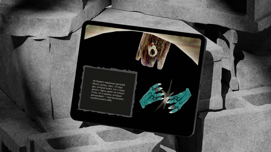 Веб-постер знакомит с внутренним устройством ювелирного коворкинга. Мы спускаем под землю, изучая инструментарий мастера, знакомясь с местными сотрудниками и узнавая новое о процессе создания украшений.