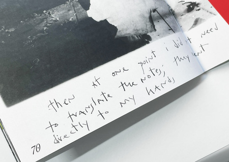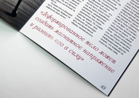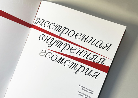 Каталог выполнен в трех цветах — белом, черном и красном, а его характерной чертой становятся рассекающие надписи и фотографии острый линии. Они расстраивают структурированный текст и вносят свой порядок.