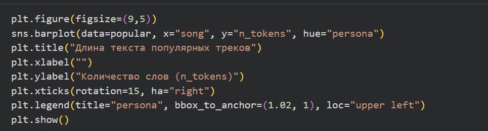 • CSV-датасет с текстами • Таблица persona_map.csv • Jupyter Notebook с кодом • Данные Яндекс Музыки