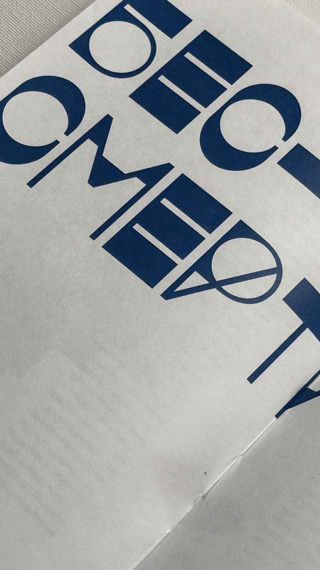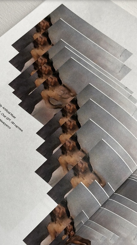 Выставка проходит в стерильном пространстве футуристичного центра сохранения сознания. Первая серия текстовых плакатов была создана с использованием изображений с платформы Pinterest, которые были найдены по запросу «future texture patterns». Мне было важно взять узнаваемые текстуры из интернета, чтобы у зрителей возникали подходящие ассоциации. Во второй серии графических плакатов был использован прием повторения: я копировала и наслаивала друг на друга работы художников, которые участвуют в выставке. Такое решение показывает, что у будущего может быть огромное количество исходов.