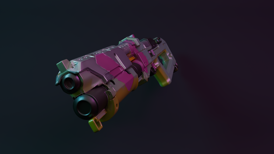 Я загрузила официальные изображения оружия из Cyberpunk wiki, после чего улучшила их качество в программе Upscayl. Затем использовала улучшенные изображения в Nano Banana для создания эскизов этого оружия с эффектом пластикового материала и чтобы ИИ вернул пропавшие детали при увеличении качества через Upscayl.