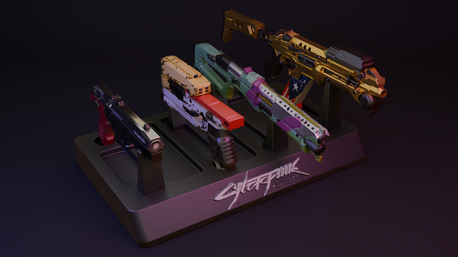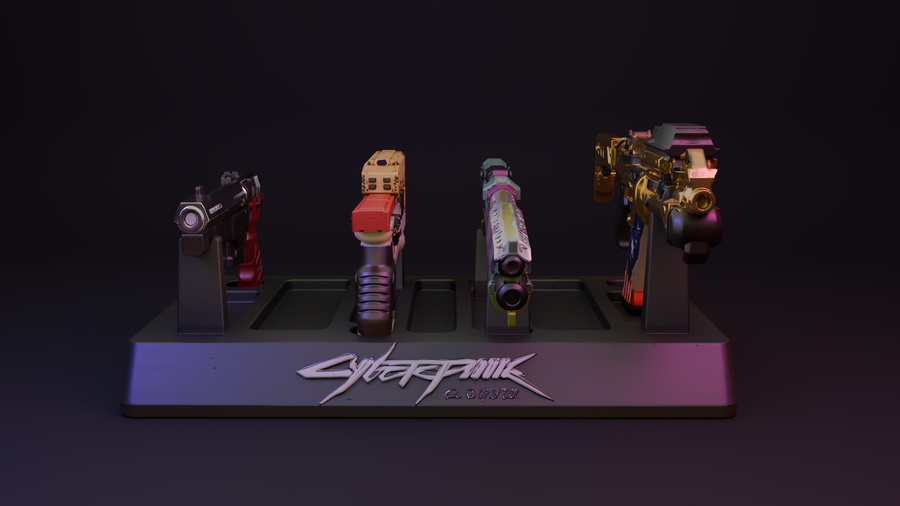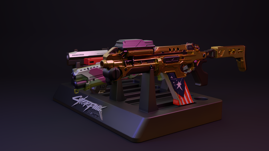 Идеей моего проекта является создание серии из четырех уменьшенных моделей культового оружия из игры Cyberpunk 2077 и подставки для них.