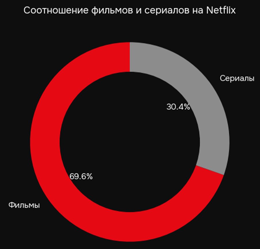 круговая диаграмма соотношение фильмов и сериалов на Netflix