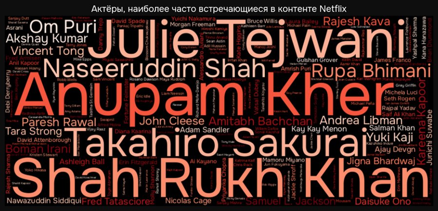 облако слов актёры, наиболее часто встречающиеся в контенте Netflix
