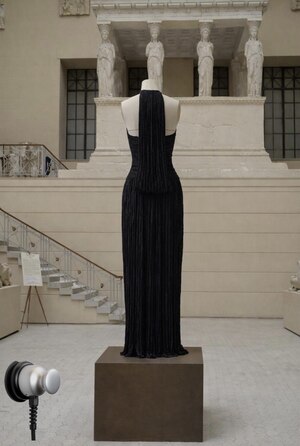 Платье предлагается разместить в Греческом дворике Пушкинского музея, экспонаты которого воссоздают архитектурный и скульптурный облик Афинского Акрополя 5 века до н. э.